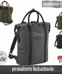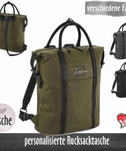 Personalisierter Canvas Rucksack; Vintage Look Rucksack mit gesticktem Monogramm;