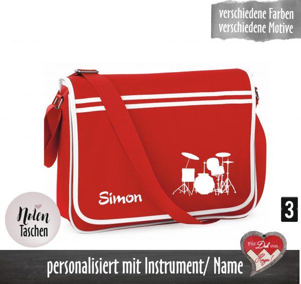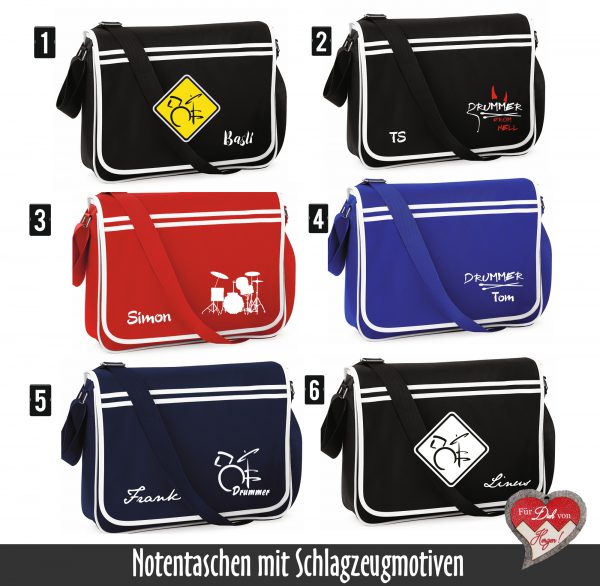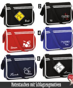 Bedruckte, personalisierte Notentasche, individuell bedruckte Umhängetasche – für Schlagzeuger.