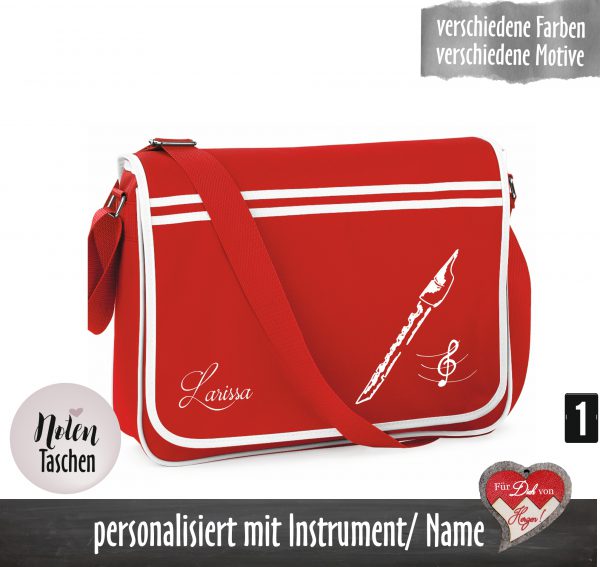 Bedruckte, personalisierte Notentasche, individuell bedruckte Umhängetasche – für den Flötenunterricht.