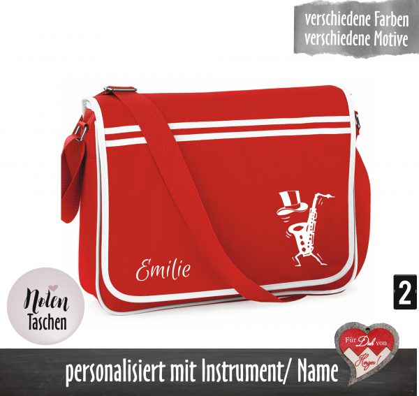 Bedruckte, personalisierte Notentasche, individuell bedruckte Umhängetasche – für Saxophonspieler!