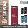 Der vakkum-isolierte doppelwandige Edelstahlbecher wird mit einer individuellen Gravur eures Namens oder Monogramms zu einem unverwechselbaren Unikat und einem praktischen und schönem Geschenk. Der To-Go Thermobecher für Tee und Kaffee ist BPA-frei und hat einen auslaufsicheren Verschluss. Der Deckel kann für die Reinigung zerlegt werden, die Teile des Bechers können in die Spülmaschine. Fassungsvermögen des Bechers: 0,37 l